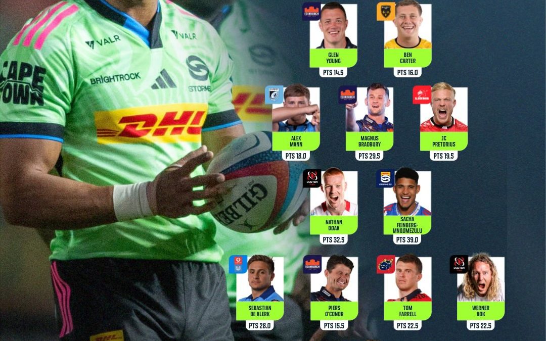 Wingers Sebastian de Klerk (Bulls) and Werner Kok (Ulster) also starred in their teams’ respective wins, but it was Stormers flyhalf Sacha Feinberg-Mngomezulu, against Zebra in Parma, who racked up more fantasy points than any other player.